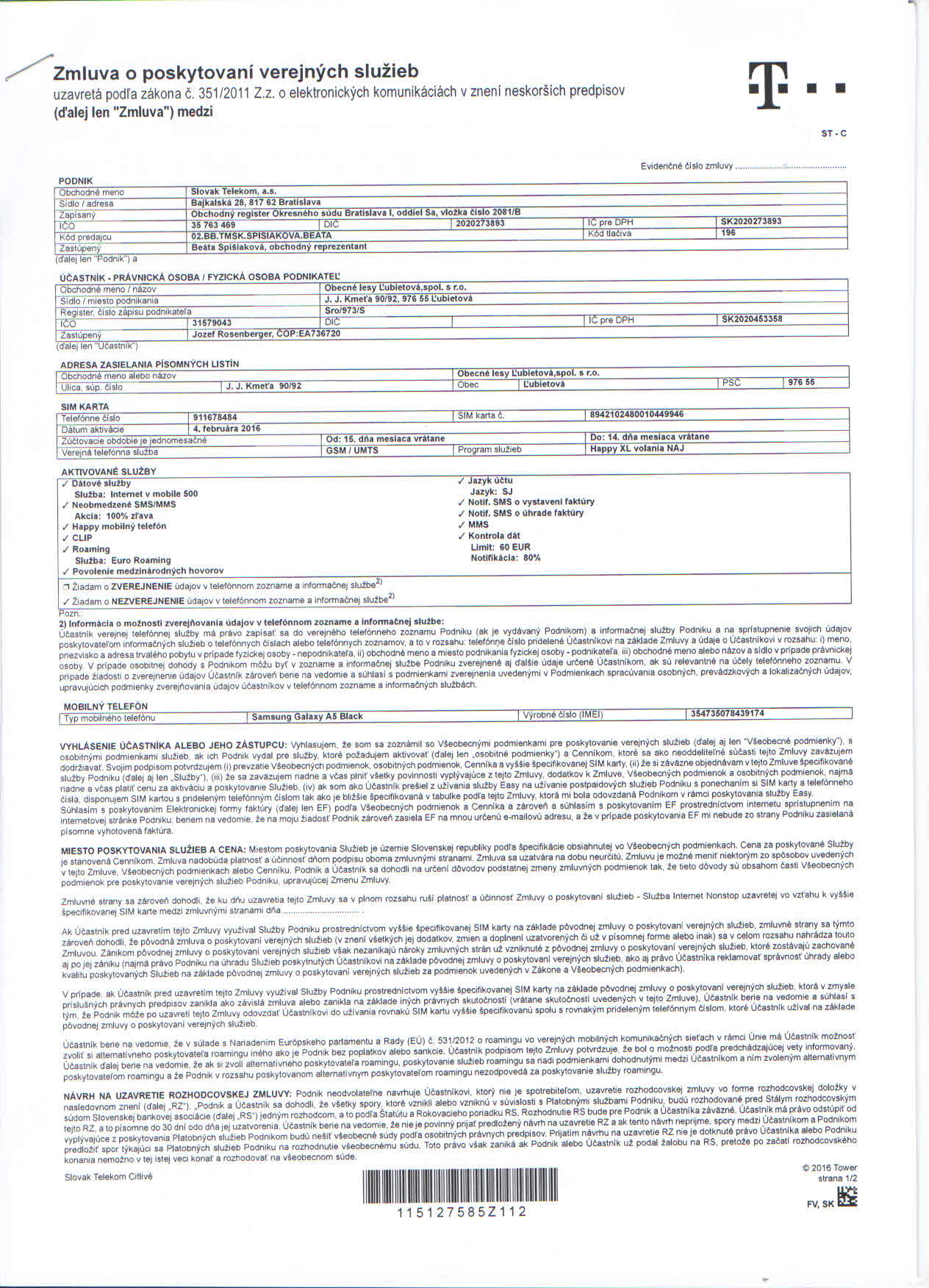 Číslo zmluvy115127585Z112